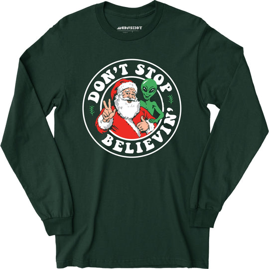 Don't Stop Believin' - Santa & Alien - Long Sleeve T-Shirt