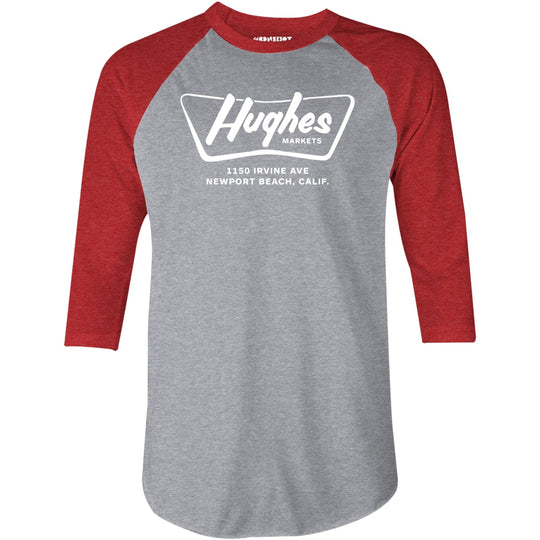 Hughes Markets - Newport Beach, CA - Vintage Grocery Store - 3/4 Sleeve Raglan T-Shirt