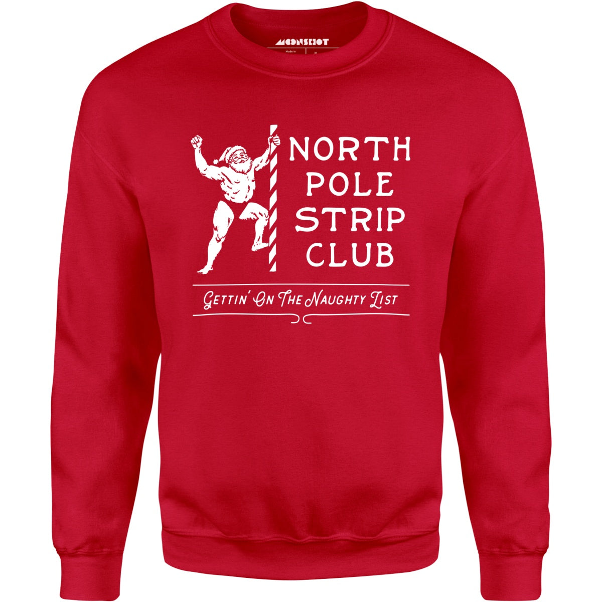 Get ready to bring some laughs this holiday season with our "North Pole Strip Club". Featuring a hilarious design of Santa in an amusing pose, this one adds a funny twist to your festive wardrobe. With the tagline "Gettin' on the Naughty List," it's perfect for holiday parties, adult gatherings, or as a funny gift for those who enjoy a good laugh and adult humor. Printed on our warm & cozy heavyweight unisex sweatshirt. We print & ship all of our high quality graphic sweatshirts in the USA.