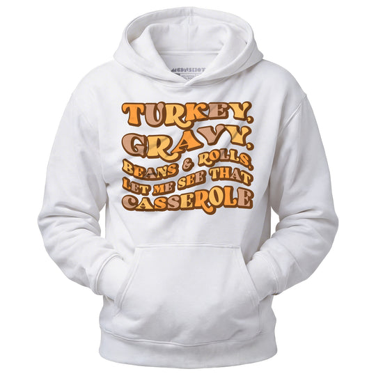 Funny Thanksgiving designs on heavyweight cotton/poly hoodies. Turkey, stuffing, questionable family conversations and the will to survive until dessert.
